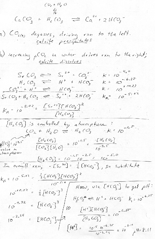 3. What is the pH of a puddle of water on top of an outcrop of strontianite (SrCO3)?